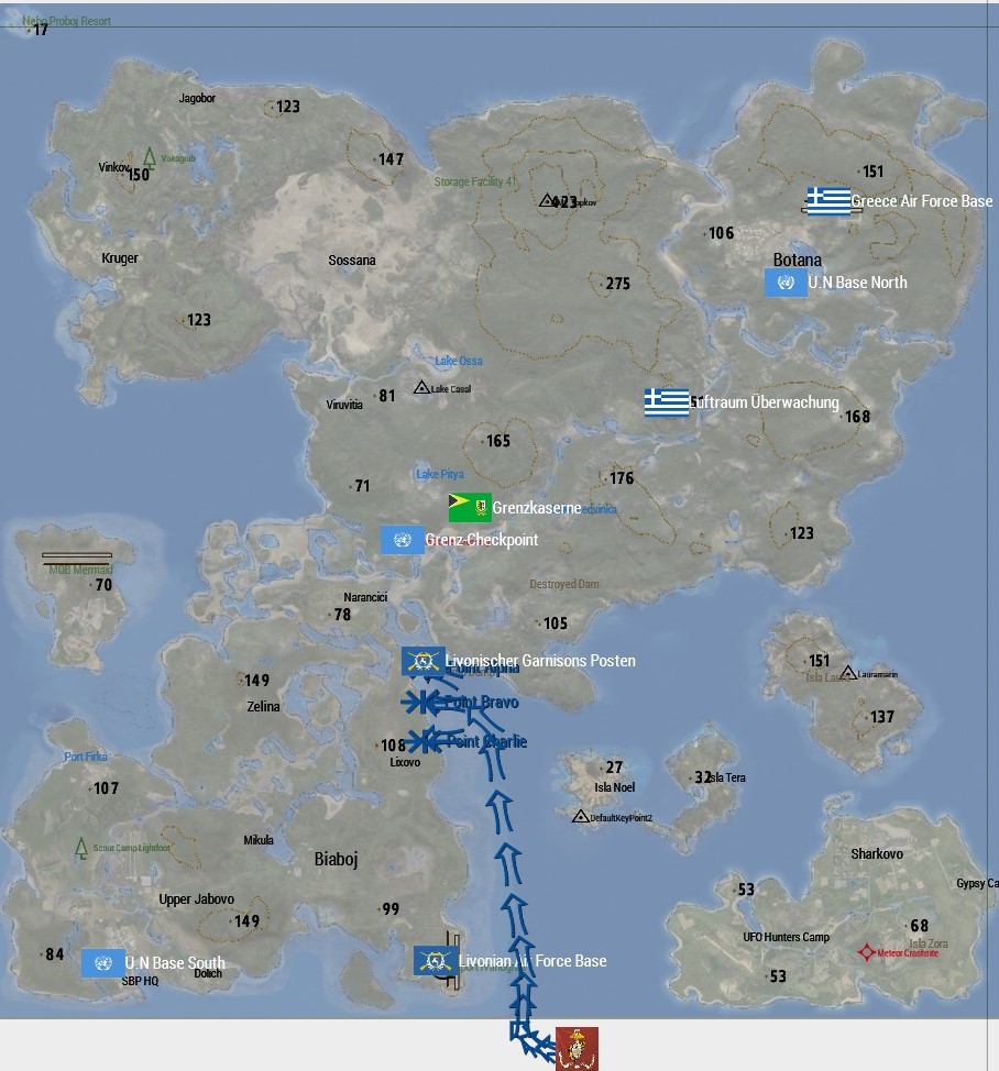 - Close Air Support (CAS) wird durch Viper 1 und Viper 2 bereitgestellt. Die Livonier stellen Munition und Treibstoff bereit an der Air Force Base