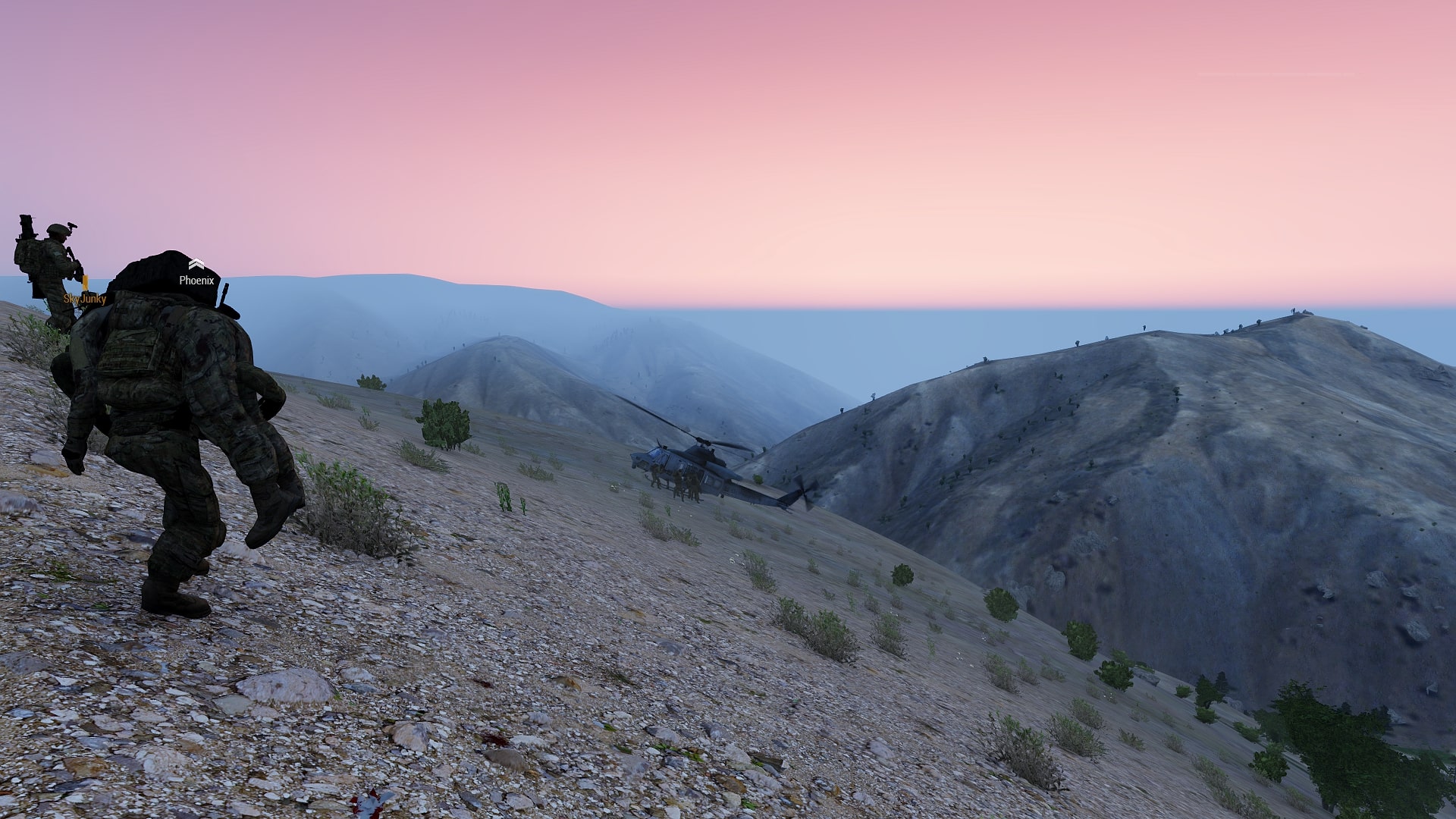 Verwundete zum Heli im Sonnenaufgang auf Takistan